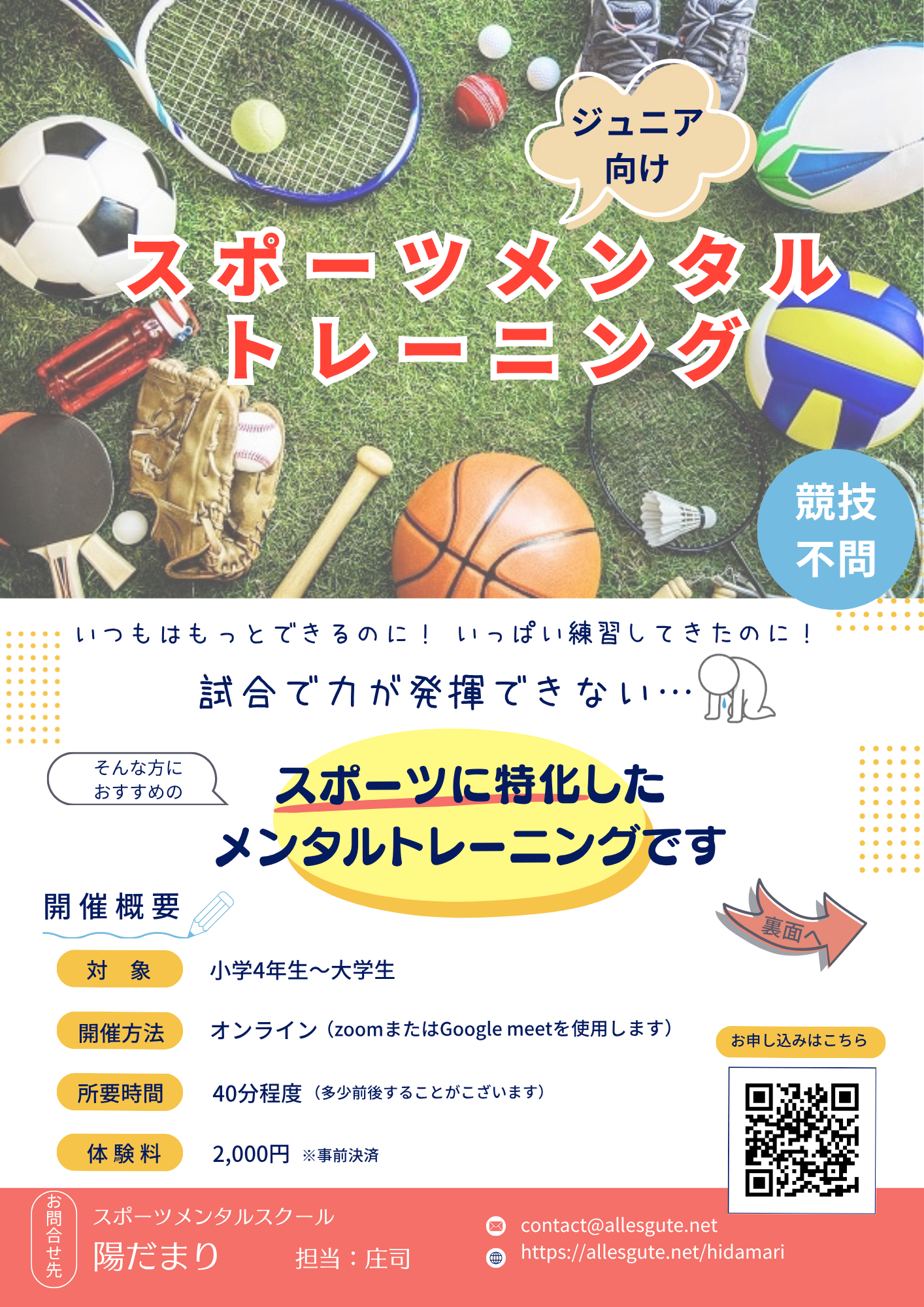 スポーツメンタルスクール『陽だまり』は、ジュニアスポーツ選手のためのメンタルトレーニング教室です。